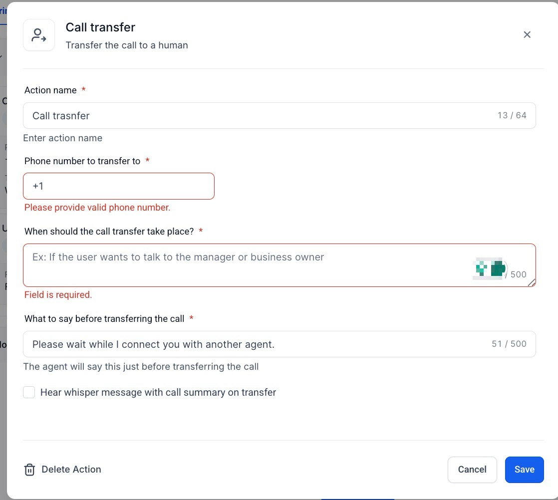 3- Call Transfer: Set rules for transferring calls to a human if certain conditions are met.