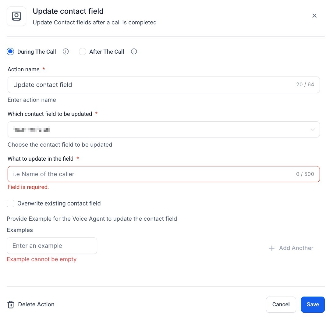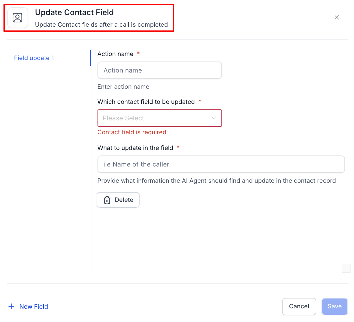 5- Update Contact Fields: Specify which fields the agent should update with the collected information.