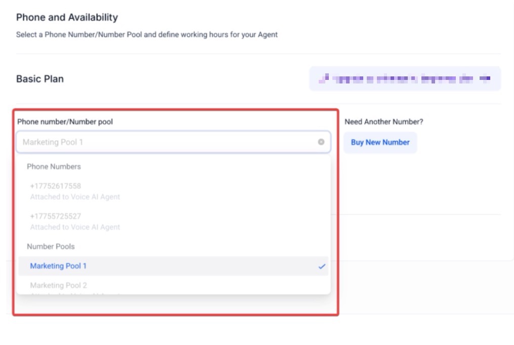 Answer: Go to Create/Update Agent → Phone & Availability and assign a Number Pool to your agent.