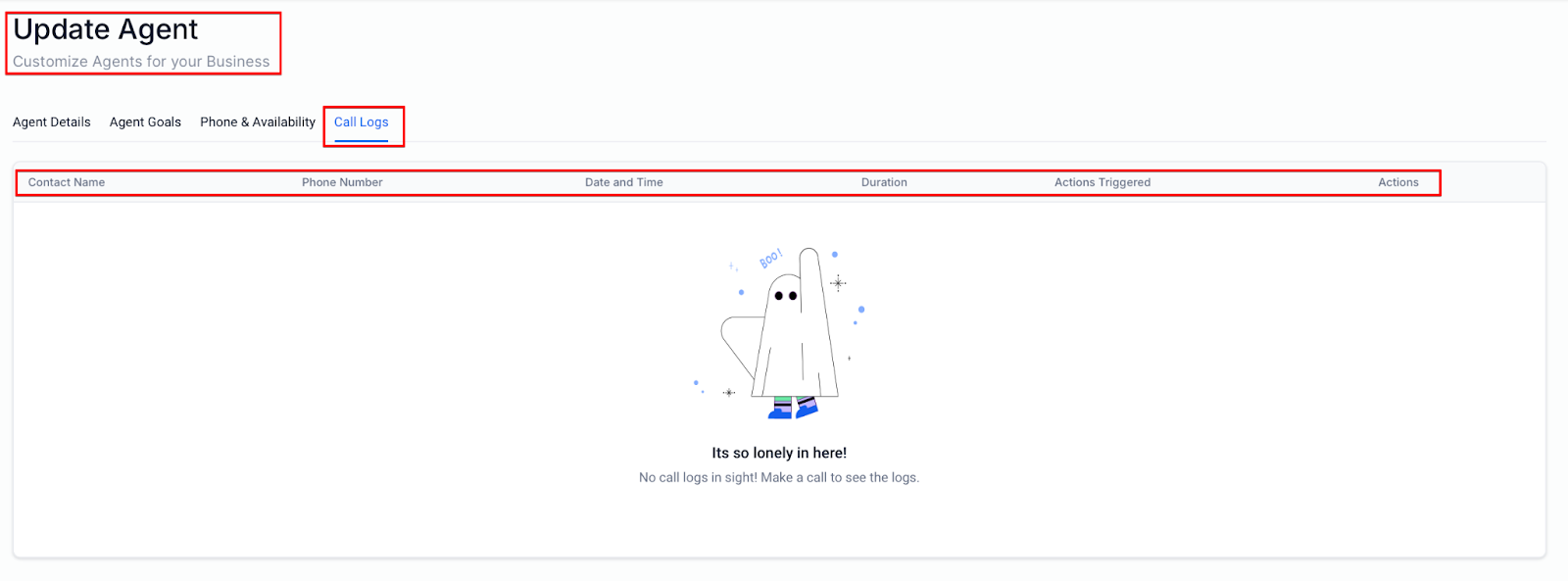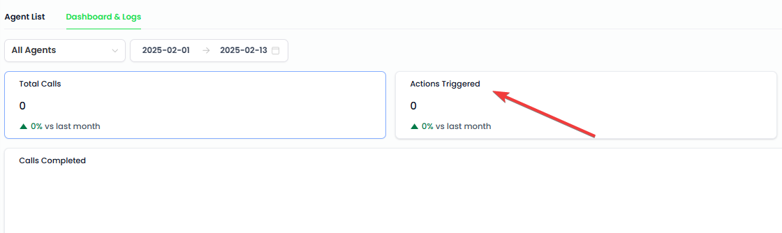 Location of the Dashboard: The dashboard can be accessed by navigating to Settings> the AI Agents tab> ‘Voice AI agents dashboards and logs’ section.