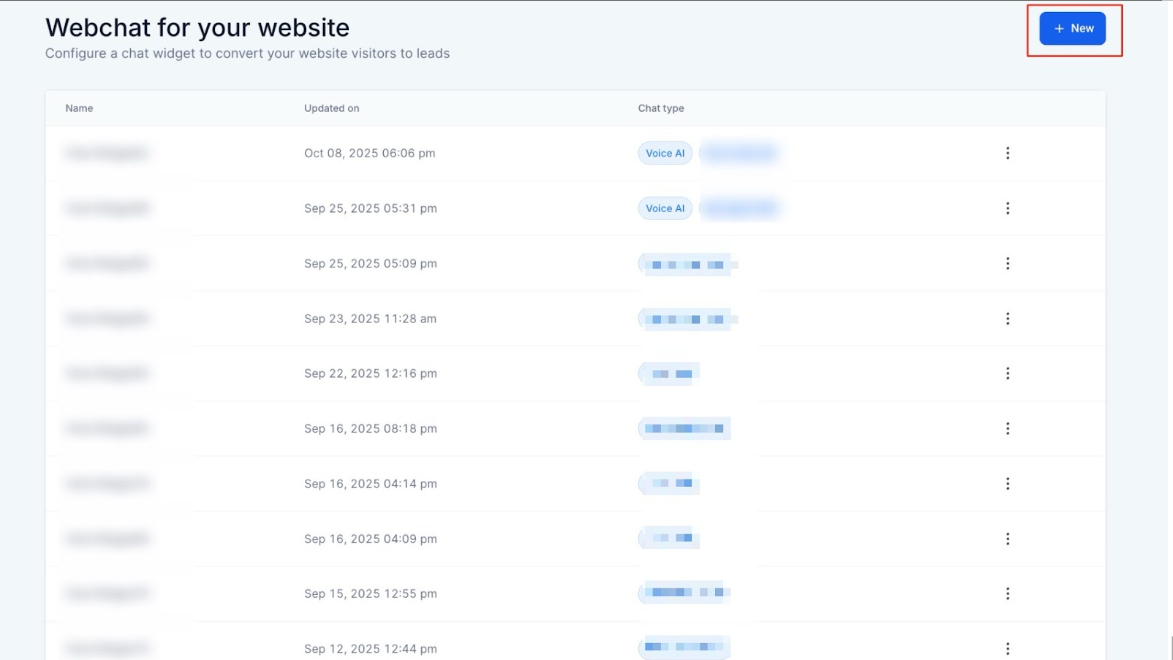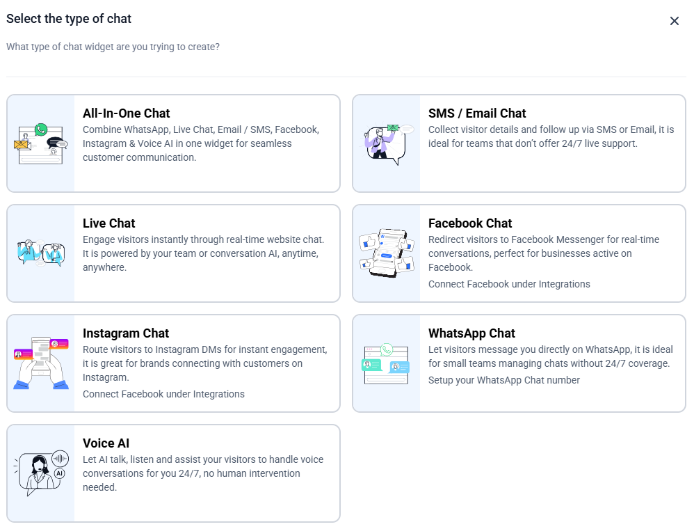2- Create a new widget and choose Voice AI as the widget type.