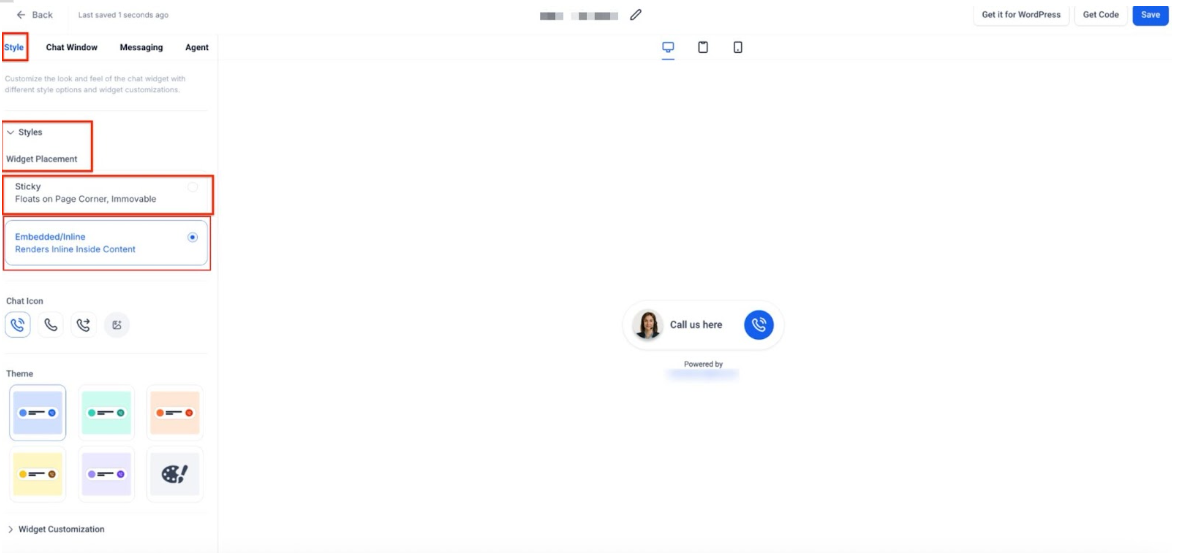 Answer: Yes. In the Styles Tab under Widget Placement, you can choose between Sticky (the default floating bubble) or Embedded/Inline, which allows the widget to sit within the actual content of your page.