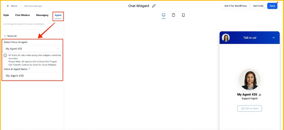 4- In the Agent Tab, select Voice AI Agent.