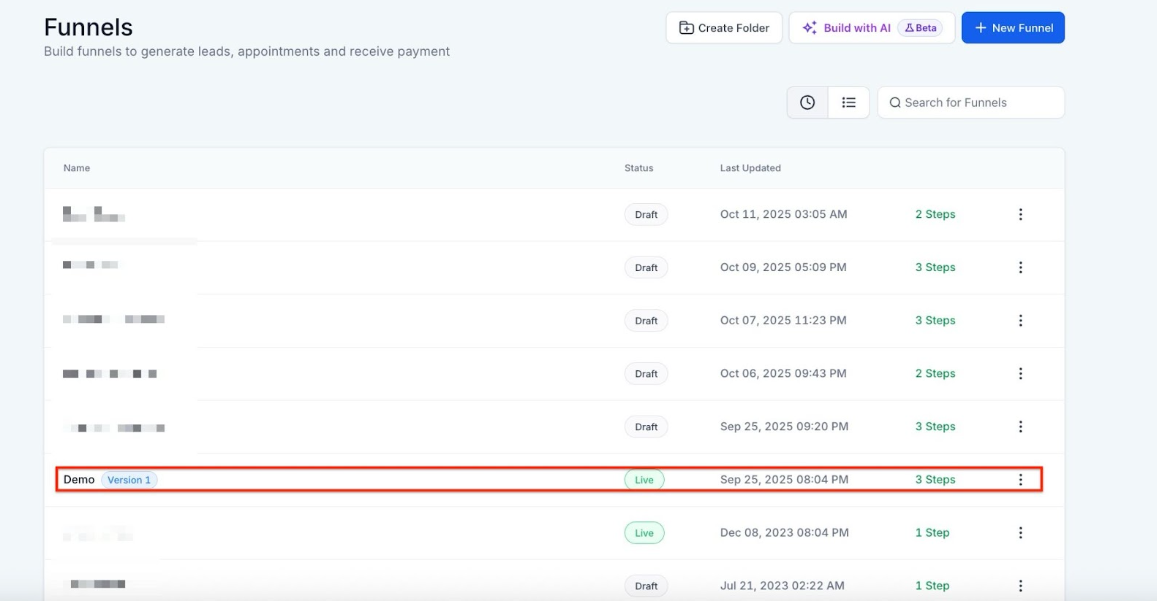 2- Copy the provided code and paste it into the desired page on your website or funnel. You can go back to the Site tab > Go to Funnels/Websites > Select the Funnel.