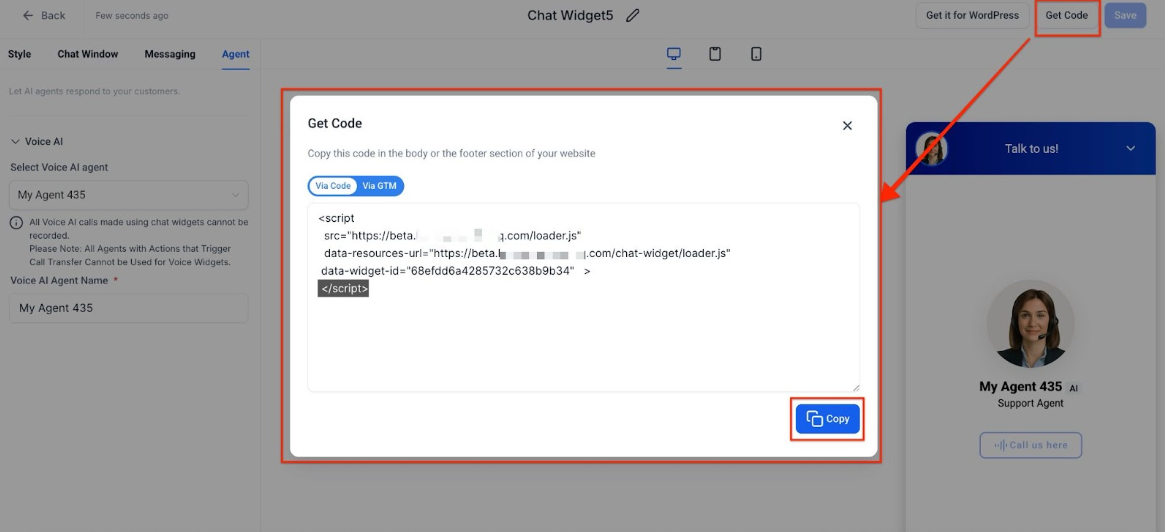 Step 1: Configure the Voice AI Chat Widget