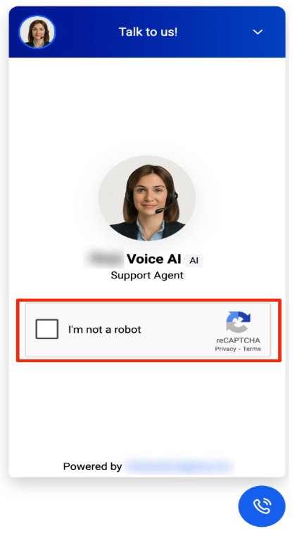 Question: Is the Voice AI Chat Widget secure? Answer: Yes. The widget ensures security and compliance through built-in features like reCAPTCHA and a transparent call recording notice, so users know their conversations are not being recorded.