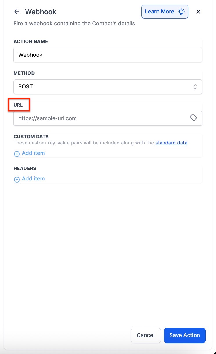 - We’ll need to retrieve the Webhook URL from Zapier to paste into a Webhook action added after the trigger. Keep this window open for now so you can come back and paste the Webhook URL.