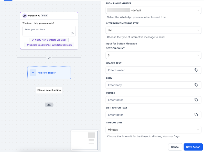 Add the WhatsApp Interactive Message ActionIn your automation: