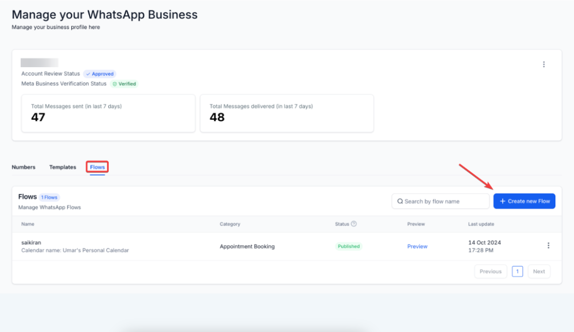 - Navigate to Settings > WhatsApp > Flows.