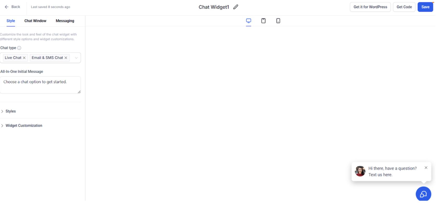 Section titled “How to Add a Chat Widget to Your WordPress Site”Step 1: Set Up Your Chat Widget in platform