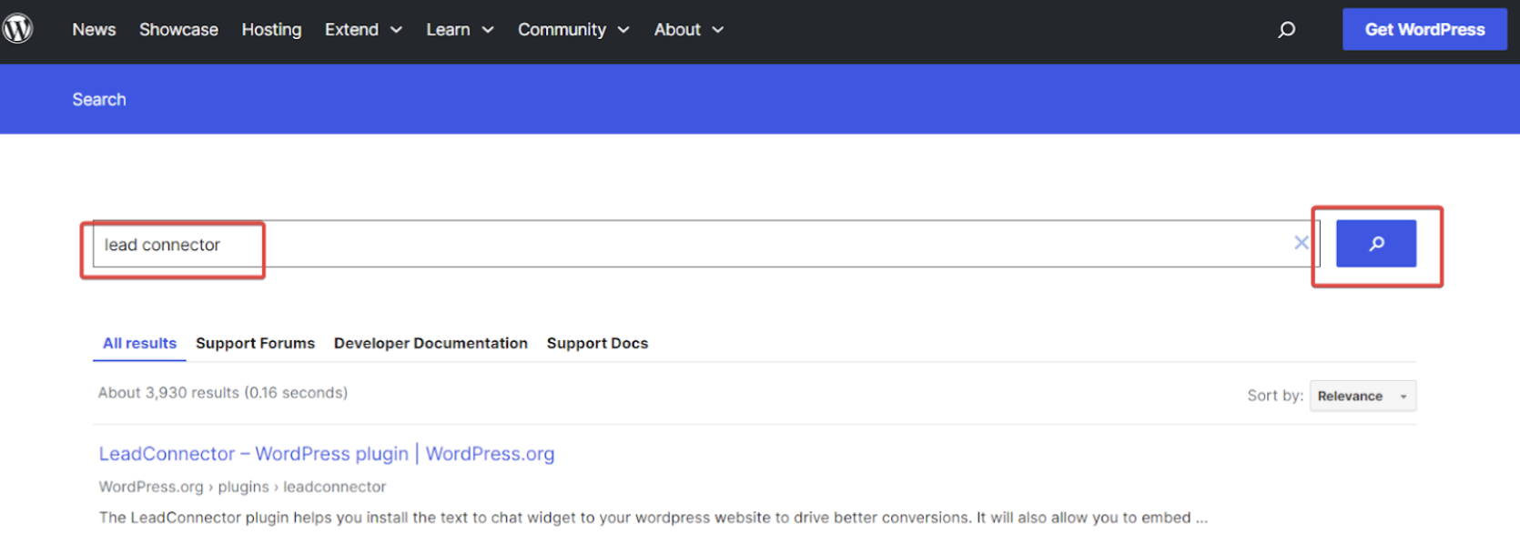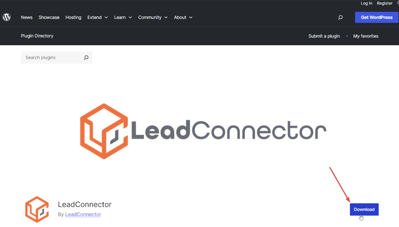 3. In the search bar, type “Lead Connector” and click Download next to the plugin.