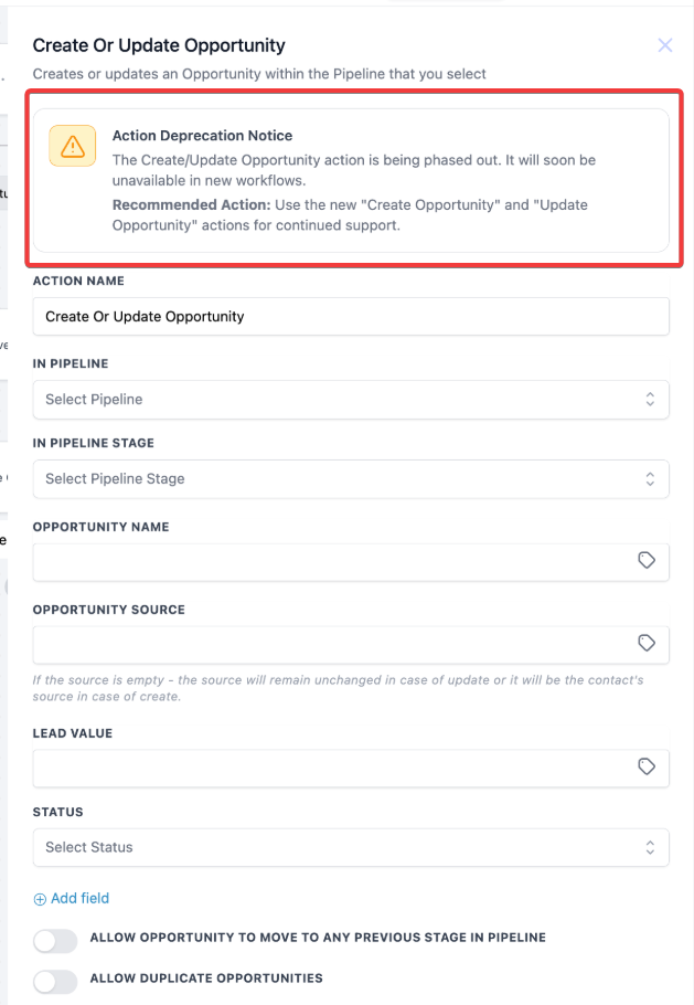 - Future-Proofing: By deprecating the all-in-one “Create or Update Opportunity” action, this feature prepares your sales workflow for future enhancements and more specialized actions.