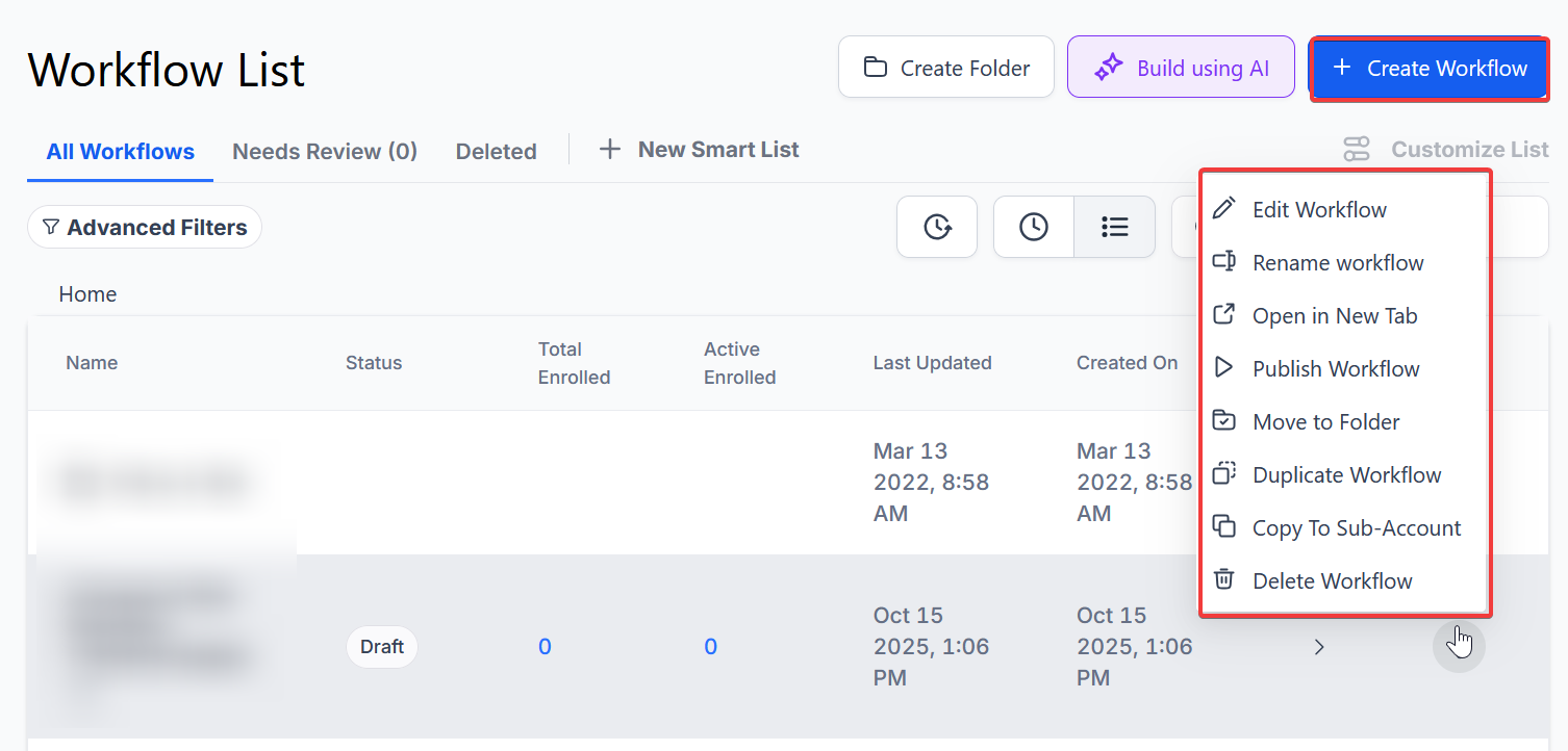 1. Add the Desired Action to Your WorkflowNavigate to Automations on the left → Workflows at the top and Create a Workflow or edit an existing one.