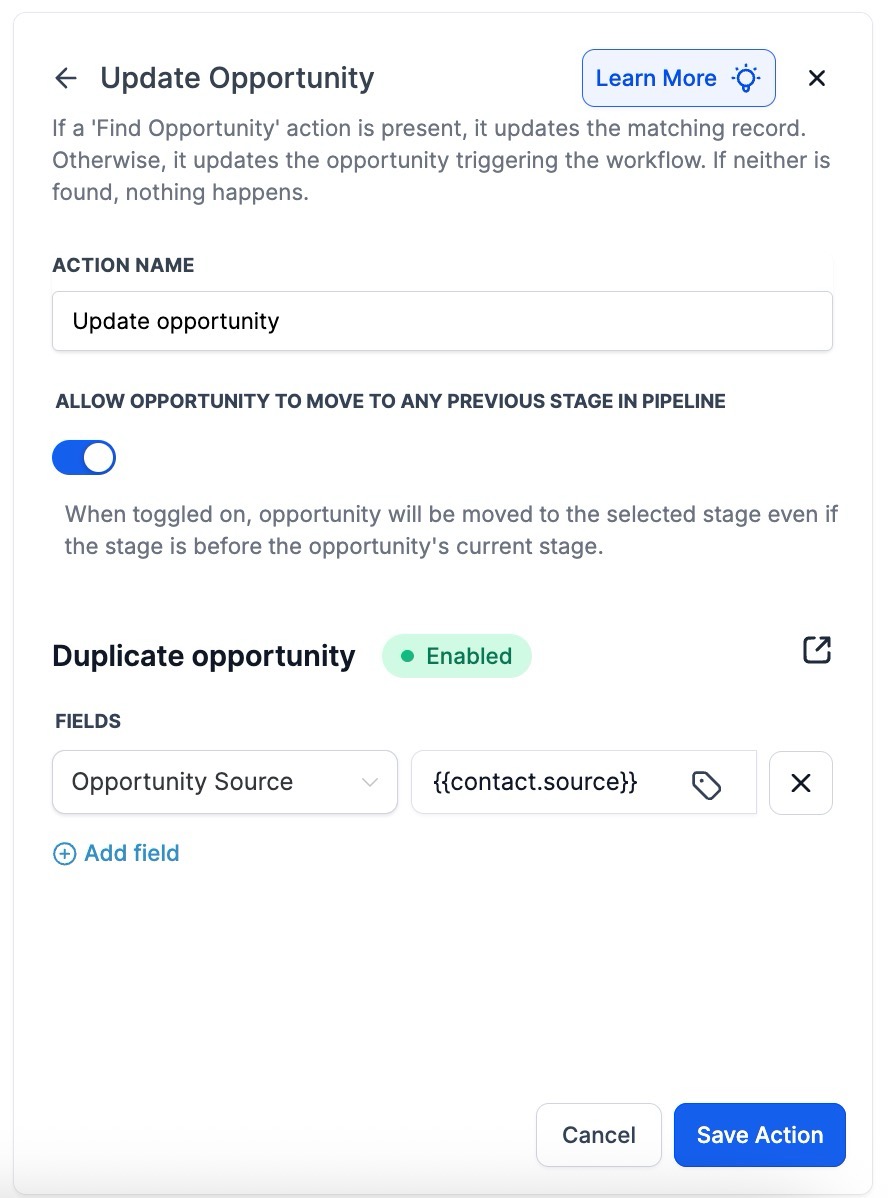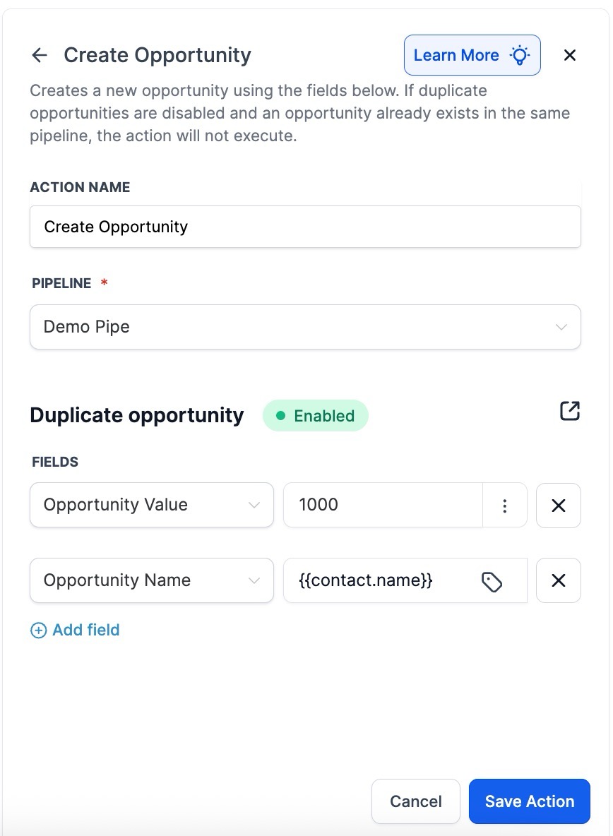 - Use Case: Ideal for onboarding new leads and automatically populating opportunity details and values. This feature also unifies the duplicate opportunity setting to follow a global setting, ensuring consistency across all pipelines.