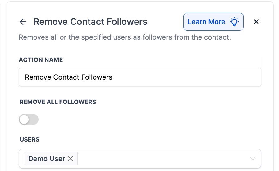 - For Add or Remove Owner/Follower, specify the users who will be assigned or removed.