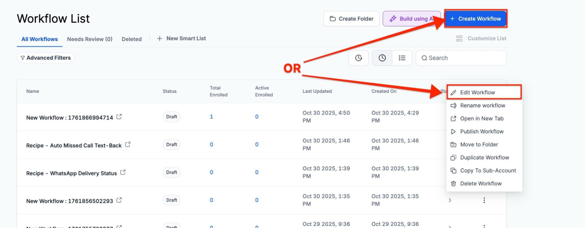 1. Add the Desired Action to Your WorkflowNavigate to Automations on the left → Workflows at the top and Create a Workflow or edit an existing one.