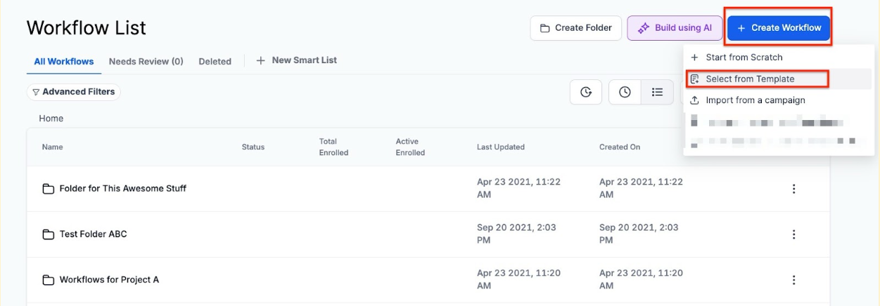 - Click on + Create Workflow in the top right corner.