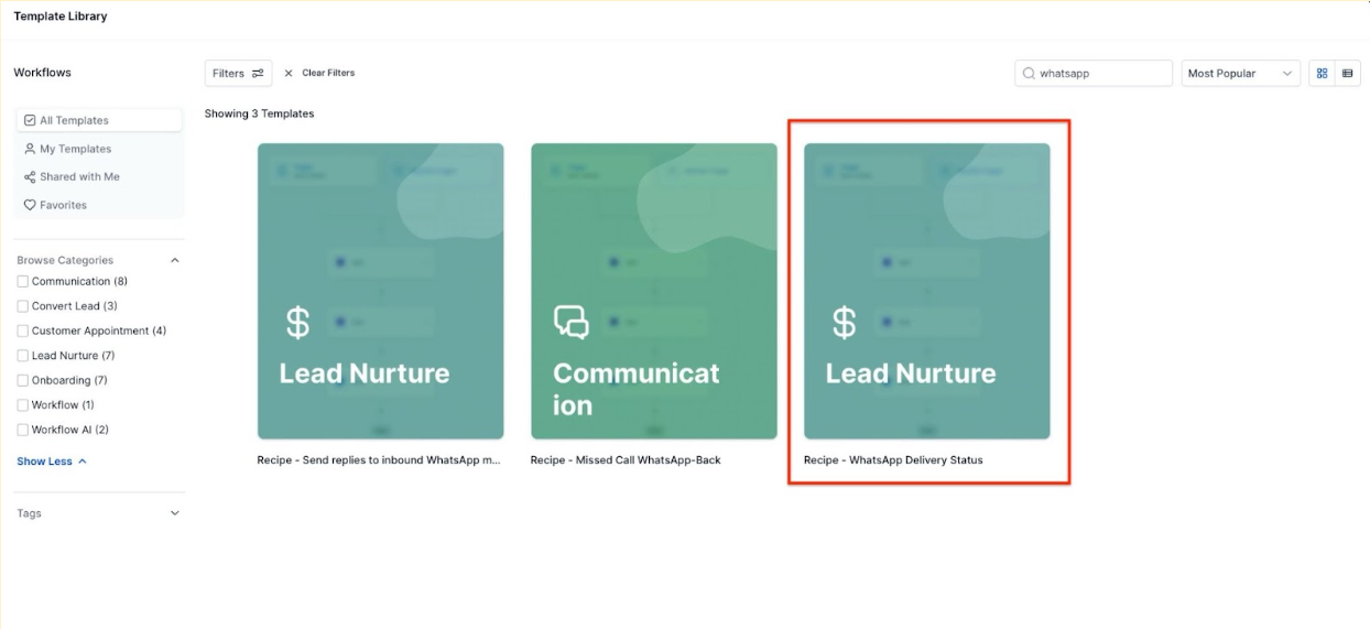 - Recipe for WhatsApp Delivery Status: Use the WhatsApp Delivery Status recipe to get started with workflows.