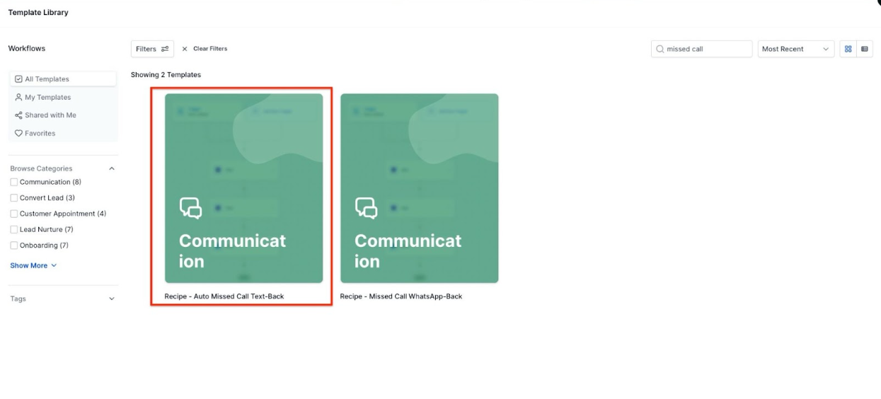 - Missed Call WhatsApp Back Recipe – This recipe ensures that missed calls are followed up with a WhatsApp message, enhancing customer engagement even if their call wasn’t answered.