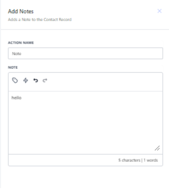 This action exists within workflows and works similarly to the notes tab within the contact area.