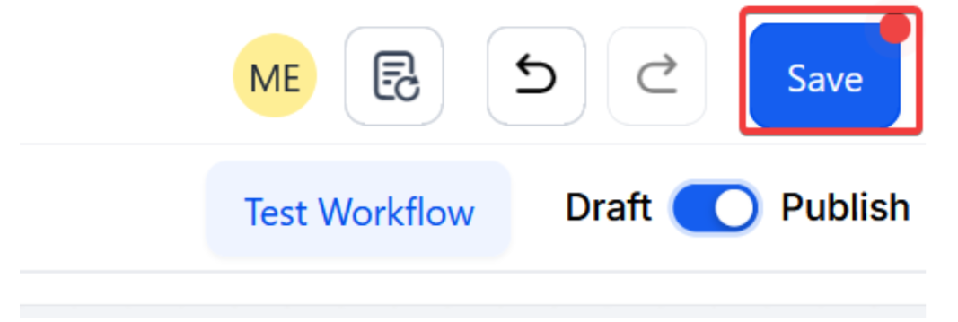 - Publish and save the workflow (top right of the screen)