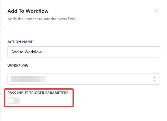 Section titled “Step 5: Pass Input Trigger Parameters (Optional)”- Enable this option if you want to carry over data from the initial trigger to the new workflow. This feature allows the new workflow to receive relevant information, ensuring a seamless transition.