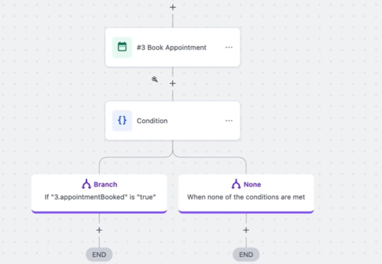 - Configure actions based on whether the appointment is successfully booked or not.