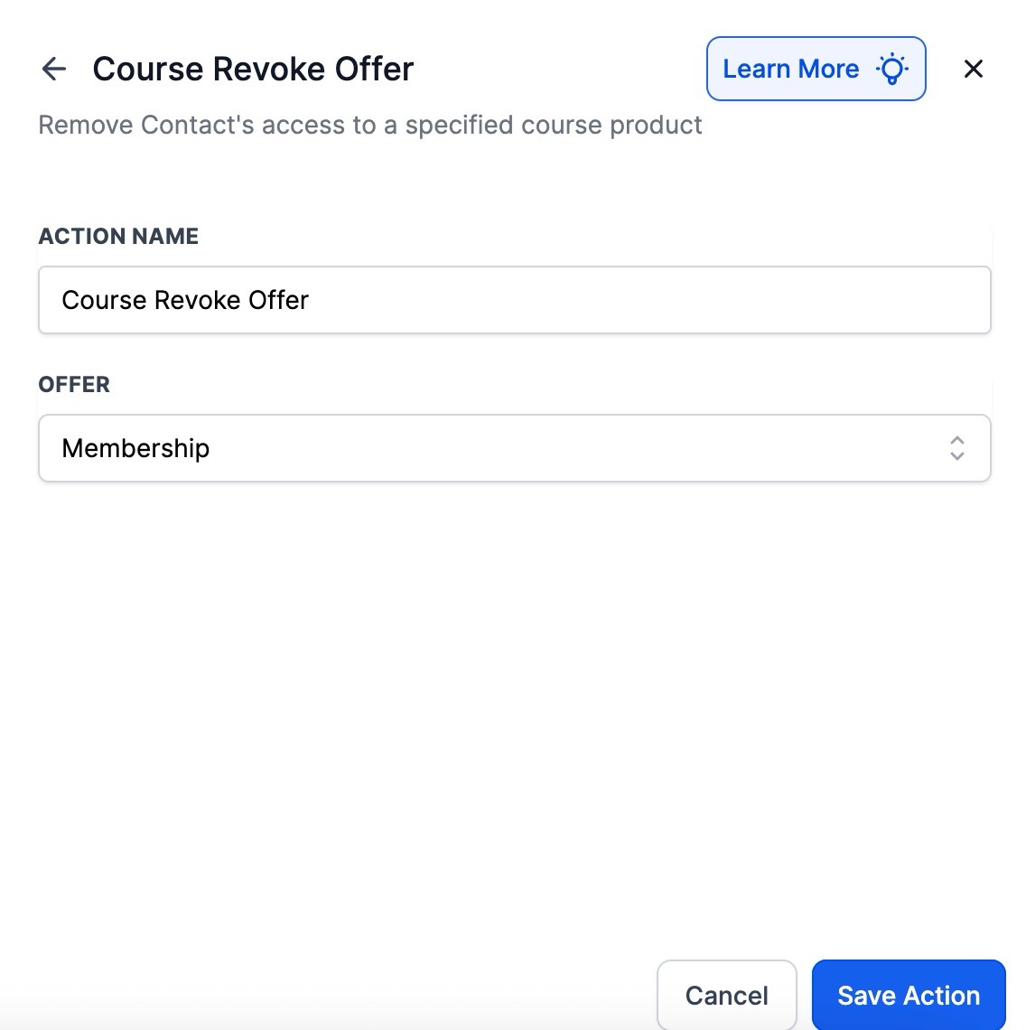 Question: What are some use cases for the Course Revoke Offer Workflow Action? Answer: Common use cases include revoking access for contacts who no longer meet specific criteria, managing course access for expired trials or subscriptions, or removing offers from contacts who have canceled their membership.