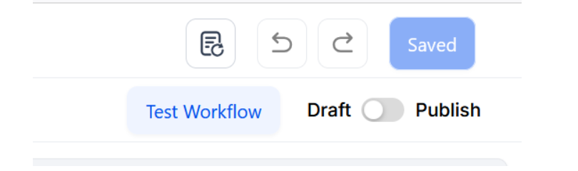 Section titled “Step 4: Press Save in the top right corner of your browser to save the workflow”- If your Workflow is ready to be enabled, make sure the toggle switch under Save is set to Publish