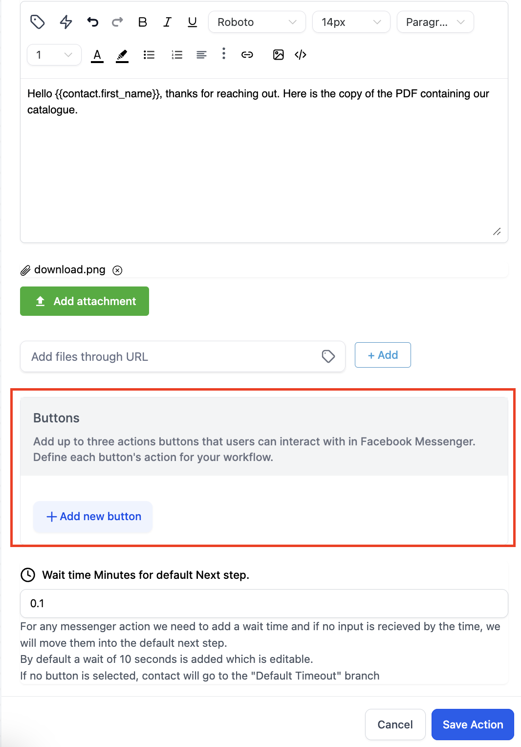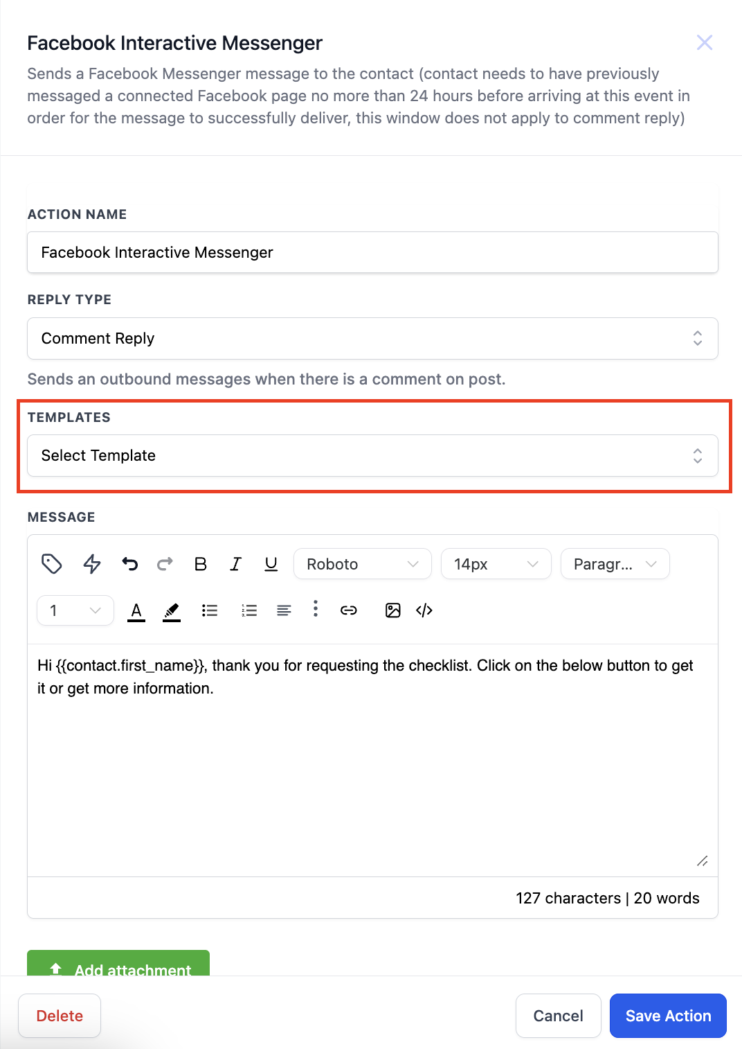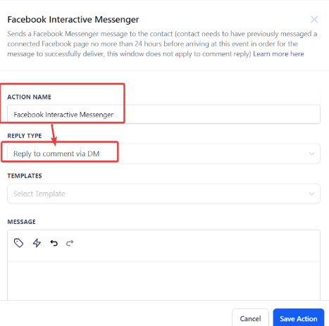 Workflow Action: Facebook Interactive Messenger