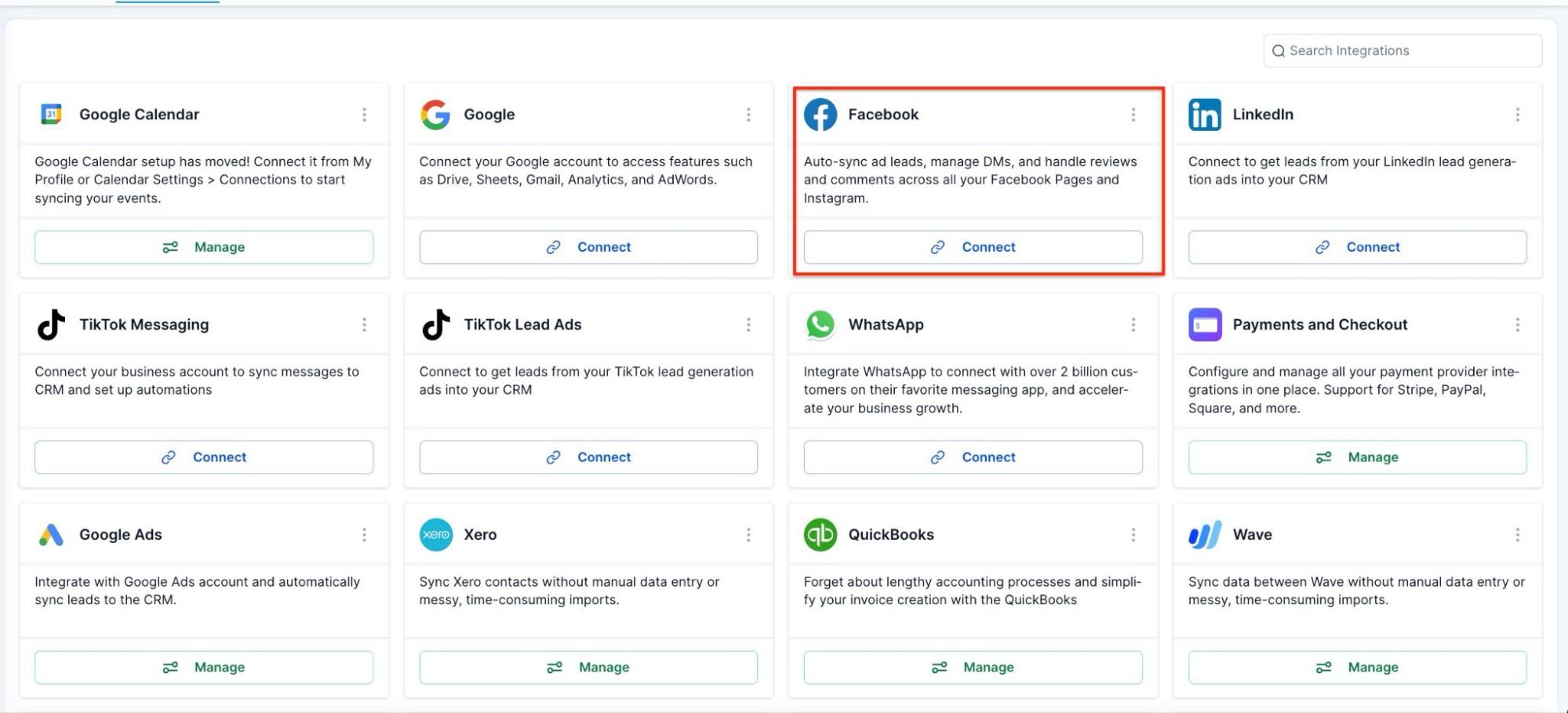 - Go to the Facebook and Instagram sections.