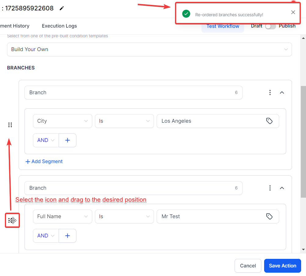 Enhanced Branch FunctionalityThe branch functionality improves clarity and user experience when setting up conditional workflows.