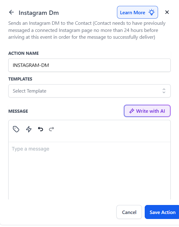 Workflow Action: Instagram DM