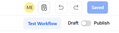 - Be sure to test your Workflow to ensure it is set up correctly using the Test Workflow button next to the Publish toggle switch.