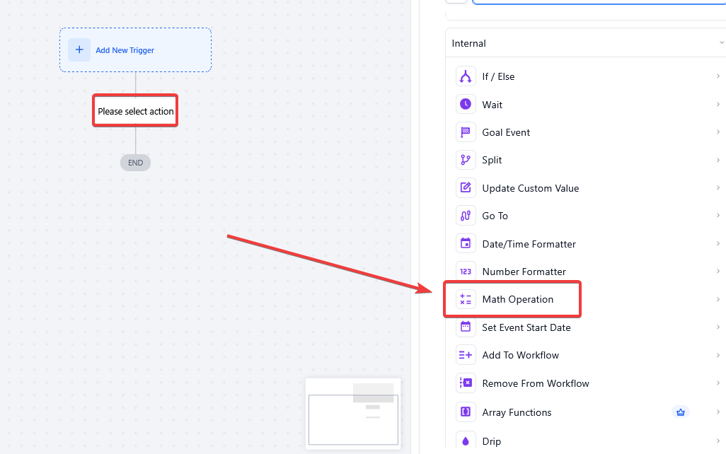 - Start by creating a new workflow or choose an existing one where you want to apply the Math Operation action.
