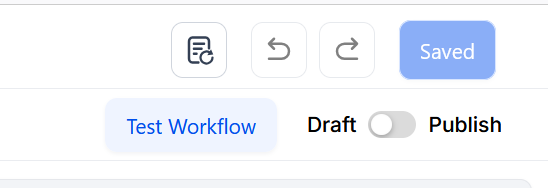 Section titled “Step 4: Press Save in the top right corner of your browser to save the workflow”- If your Workflow is ready to be enabled, make sure the toggle switch under Save is set to Publish