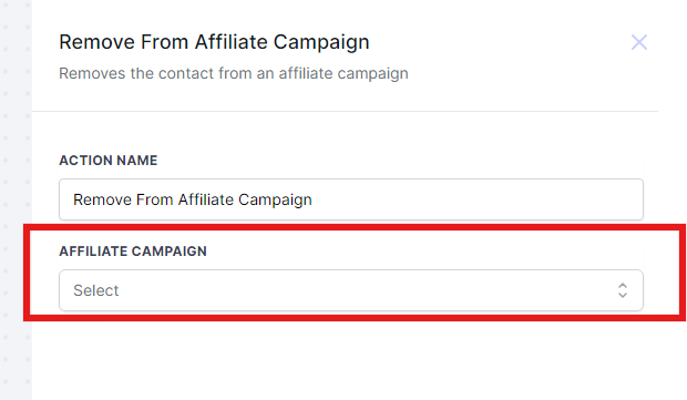 Step 3: Setting up the Remove From Affiliate Campaign Action