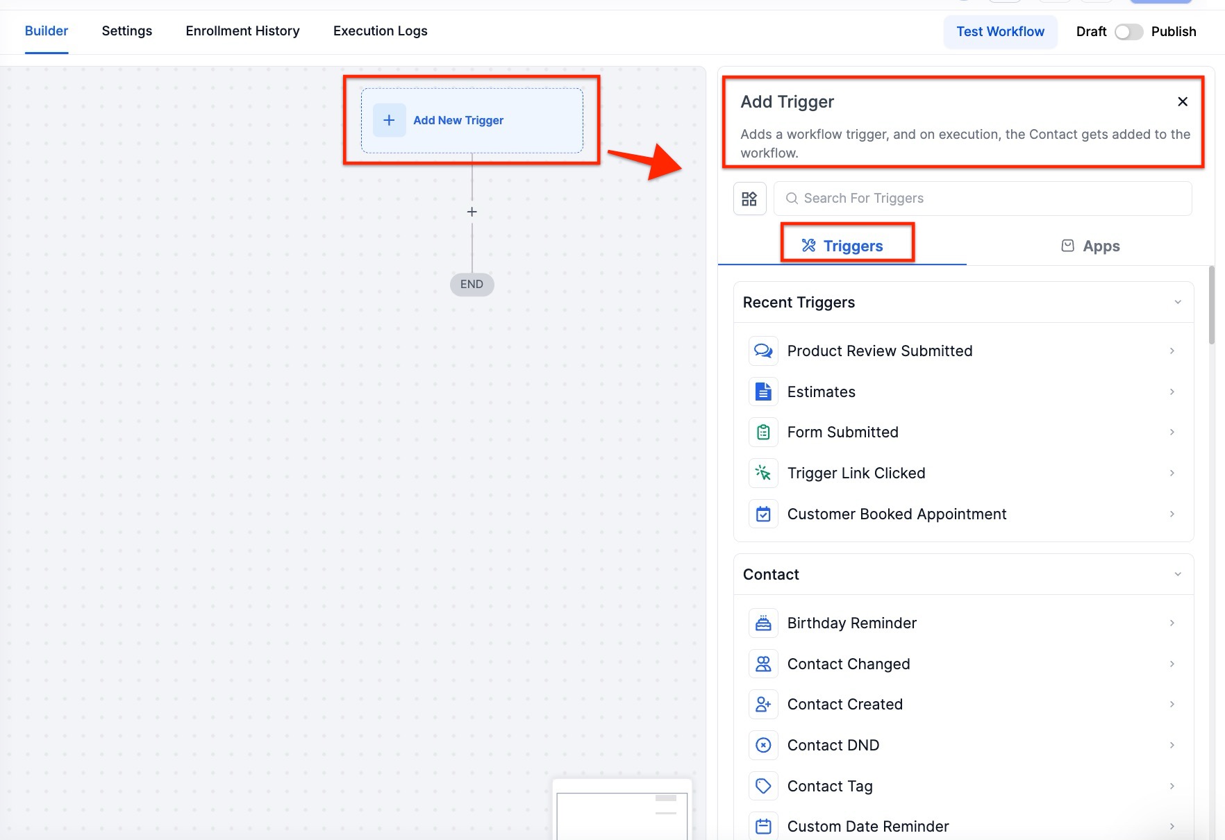 Section titled “Step 2: Set up applicable Workflow Trigger(s). ”We have multiple articles available to explain the setup of each of the Workflow Triggers. Feel free to review our articles for more information on setting these up.