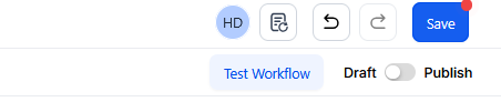 - If your Workflow is ready to be enabled, make sure the toggle switch under Save is set to Publish