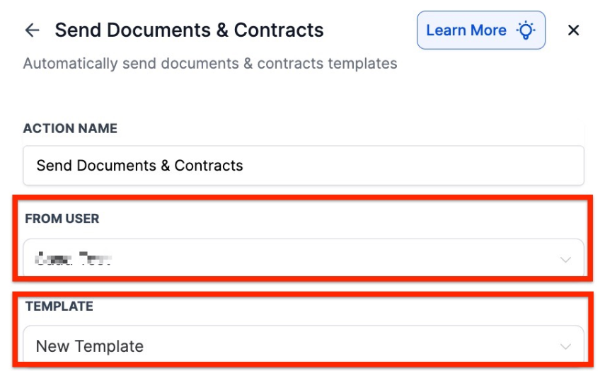 Question: Can I use this action for non-contract documents, like agreements or proposals? Answer: Yes, the “Send Documents & Contracts” action can be used for any document type you choose, provided you have set up the appropriate templates in your system.