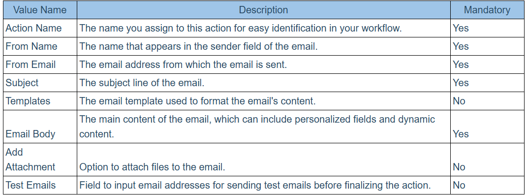 Workflow Action: Send Email