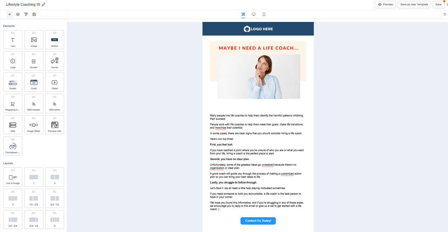 Section titled “3. Drag and Drop Email Template Editor in Workflows:”This enhancement in the Email Template Builder within Workflows allows users to save their changes as new templates, ensuring the original templates remain unaltered. This provides flexibility for tailoring templates to specific needs without starting from scratch.