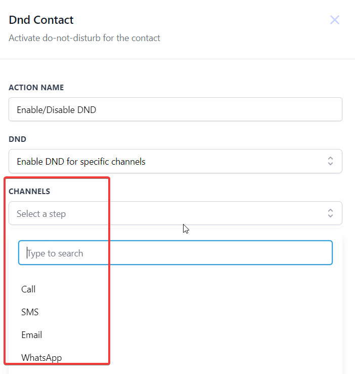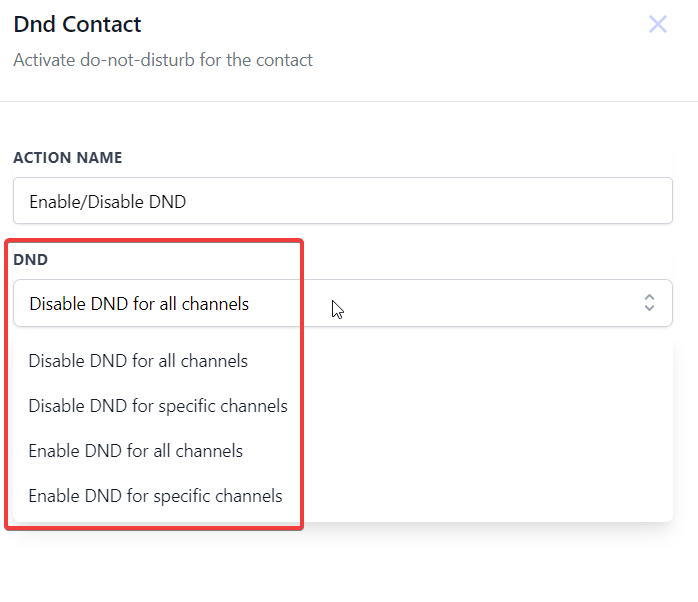 3. Select DND Preferences: Within the Set Contact DND action, choose whether to activate DND for all communication channels or specific ones. Tailor your selection based on your contact’s preferences and your communication strategy.