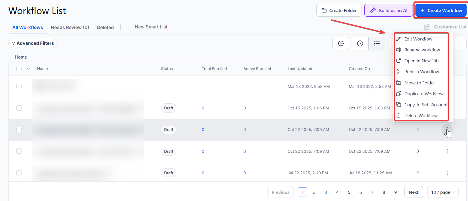 Section titled “Step 1: Create your workflow”- Go to Automation on the left and then Workflows at the top