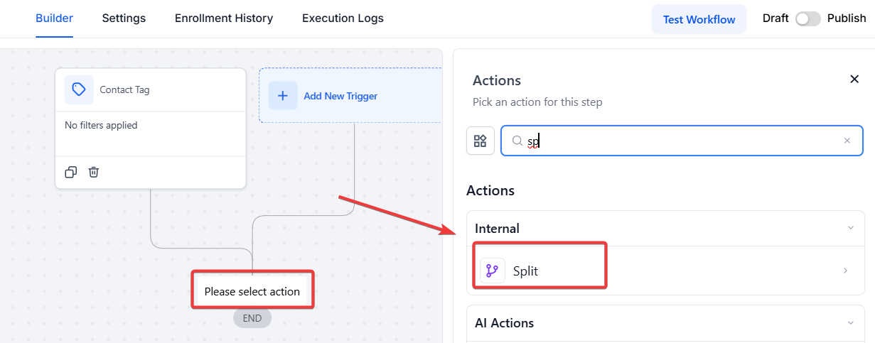 This action will allow you to test different marketing communication and actions with your users. You can use this feature to divide your contacts into more than one path on a certain percentage and use different actions in each path. With this, you can determine which version works best for your audience.