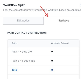 Section titled “Step 3: Stats”- To know how the stats are going and which contacts are going into which path, click on the action “Split”, and on the Statistics button.
