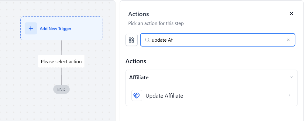 Section titled “Pro Tips”- Triggers Flexibility: While you can use any Workflow Trigger to activate the Update Affiliate action, consider using triggers that align closely with your affiliate management goals to optimize efficiency.