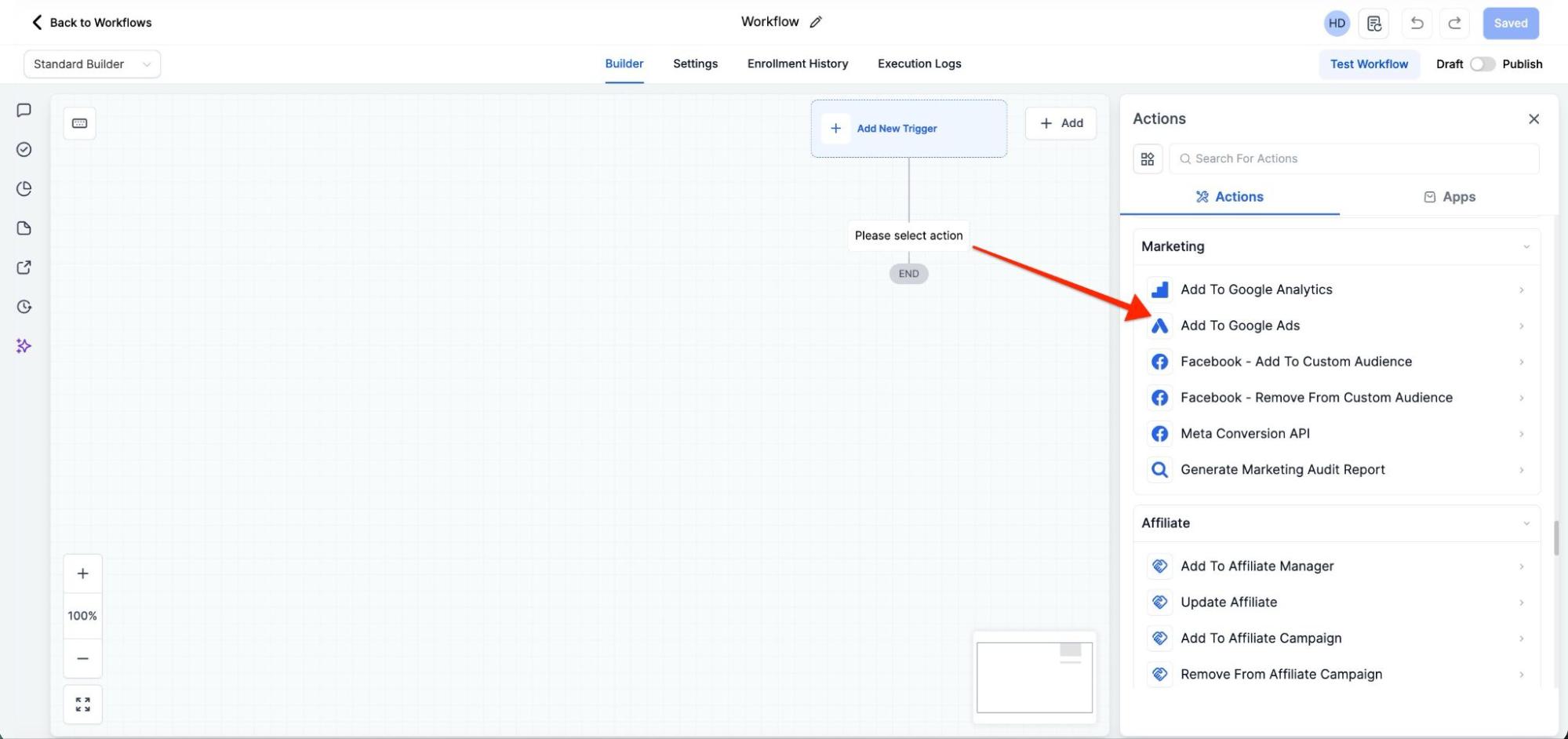 By integrating the “Add To Google AdWords” action, you can make data-driven decisions to optimize your advertising campaigns and maximize your return on investment.