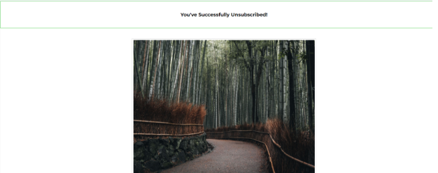 - Use Clear and Friendly Language: Customize the unsubscribe success page with a polite and reassuring message, such as “You’ve been successfully unsubscribed. If this was a mistake, you can resubscribe below.”