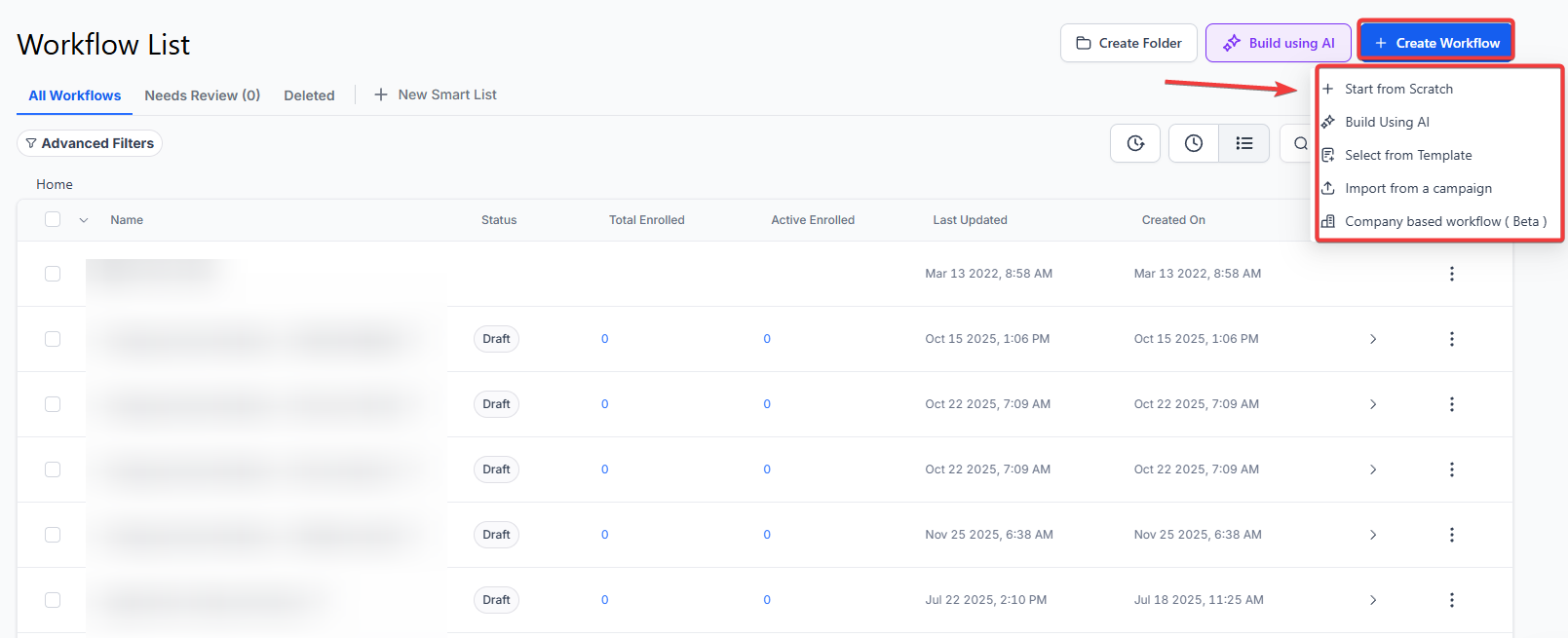 Section titled “Step 3: Create a Workflow Trigger”- Navigate to Automation > Workflows > Create Workflow > Start from Scratch.